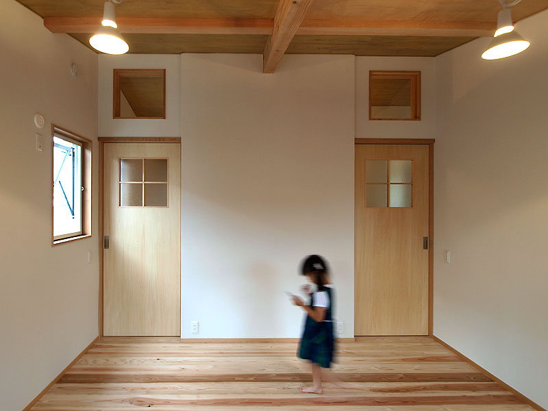 フラッシュ戸にガラスを入れた場合です。このようにガラスを入れるだけで建具もずいぶん表情が出ます。