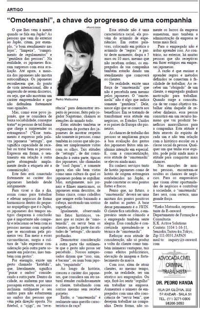 2013年6月掲載 「ブラジルジャーナルニッパク誌」接遇コラム掲載、現在連載中