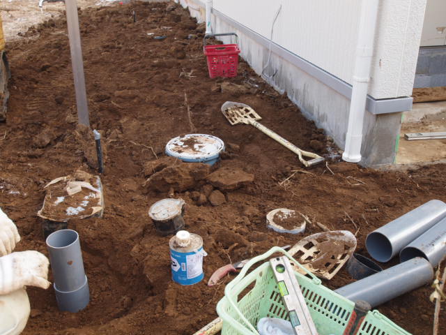水道屋さんが外部配管工事を行っていたので、エコキュートや外水栓