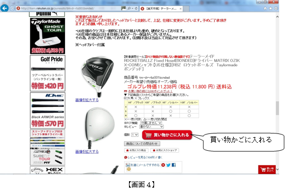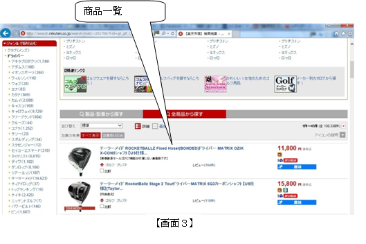 (3)サブカテゴリーを1つ選択するとサブカテゴリーに含まれる商品が一覧表示される。ここでは、カテゴリーとして「クラブ(メンズ)」、サブカテゴリーとして「ドライバー」を選択した場合の画面(画面3)である。