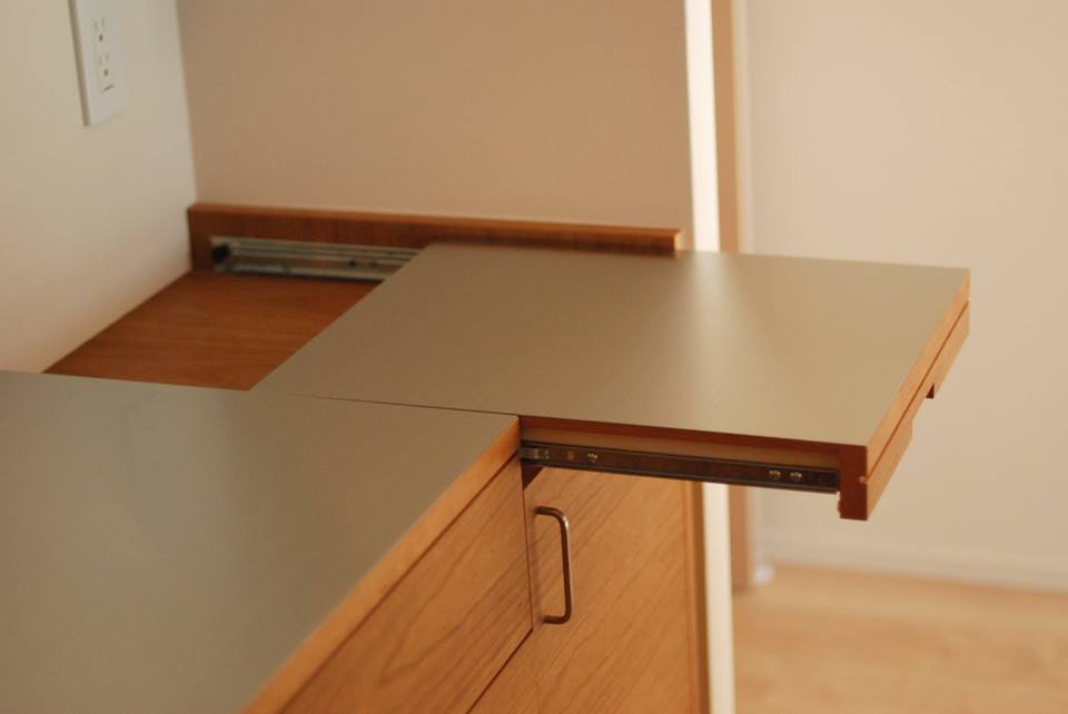 また、右端はそのステンレスの一部が動いてスライドテーブルになるような構造に。閉めた時の一体感を大切に考えました。