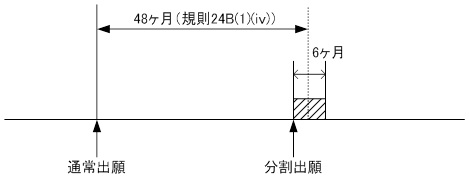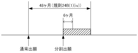 図6は,分割出願の日から6ヶ月の期間の途中で,出願日(又は優先日)から48ヶ月の期間が満了する場合の審査請求期限を示している。