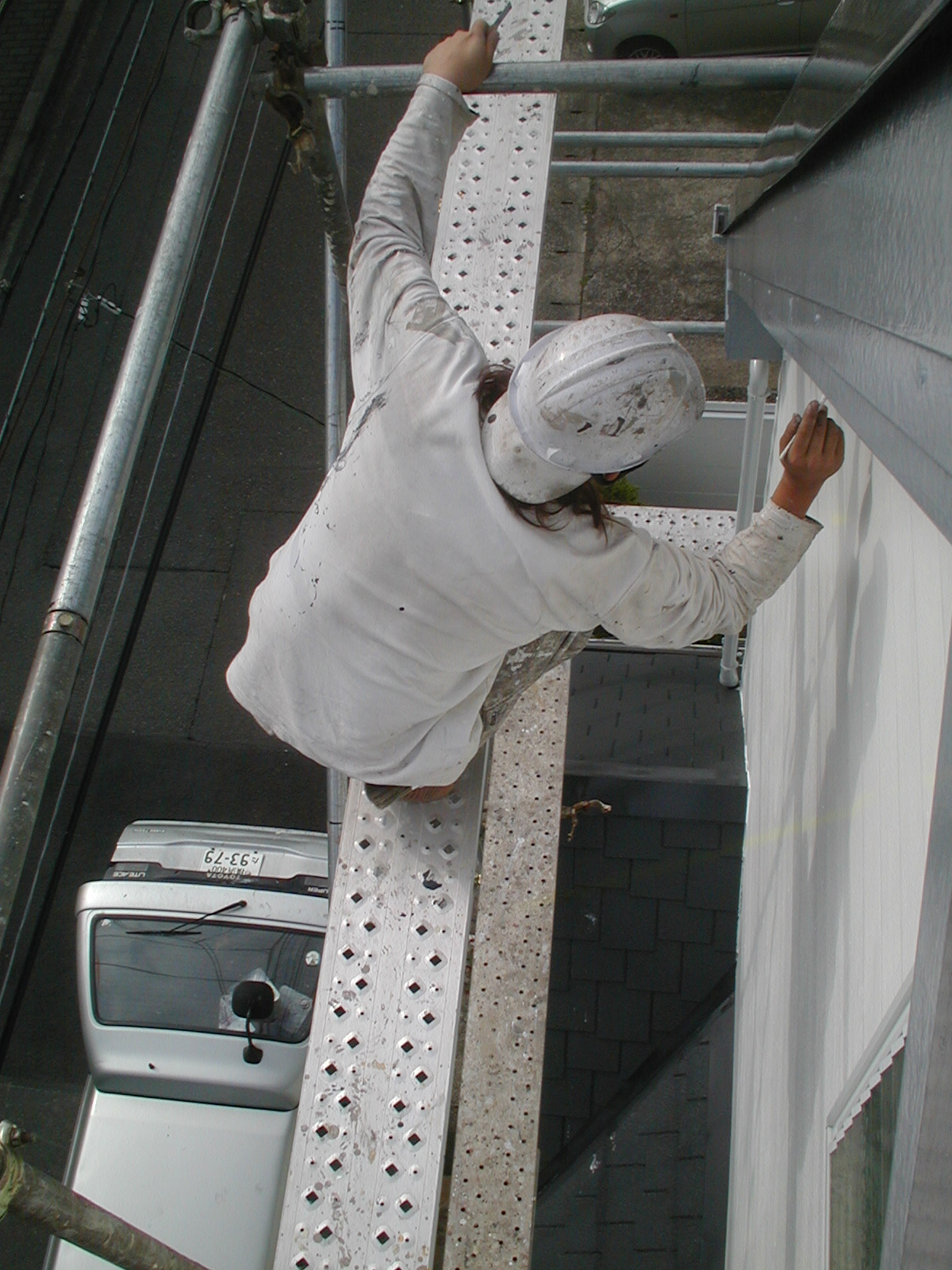 現場では危険な足場の上り降りを、工事期間中多いときには百回前後繰り返します。