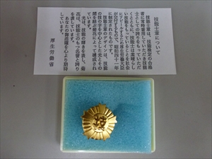 「技能士章は技能検定の合格者に常時着用していただき技能士としての誇りを持っていただくとともに、技能士は素晴らしい技能をもっていることを社会にアピールするため厚生労働大臣が交付するもので、昭和41年に制定されたものです