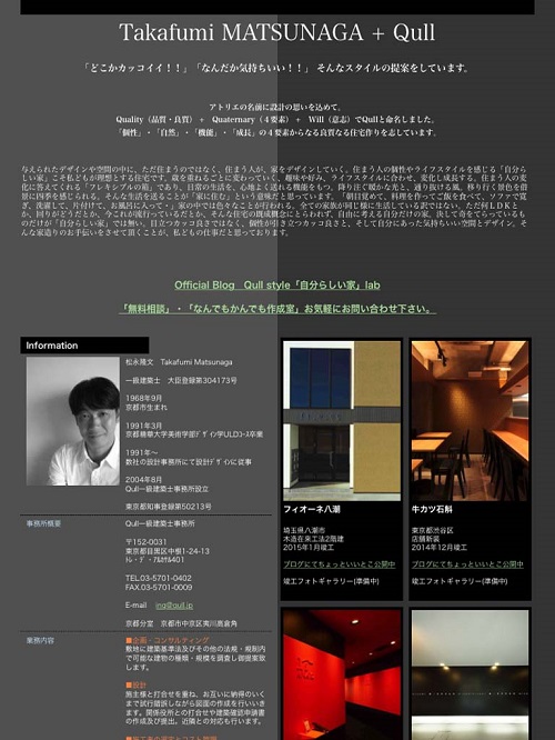 Qull一級建築士事務所を立ち上げてすぐ、まだ何も作品がなかったにもかかわらず、開設した私どものホームページ。