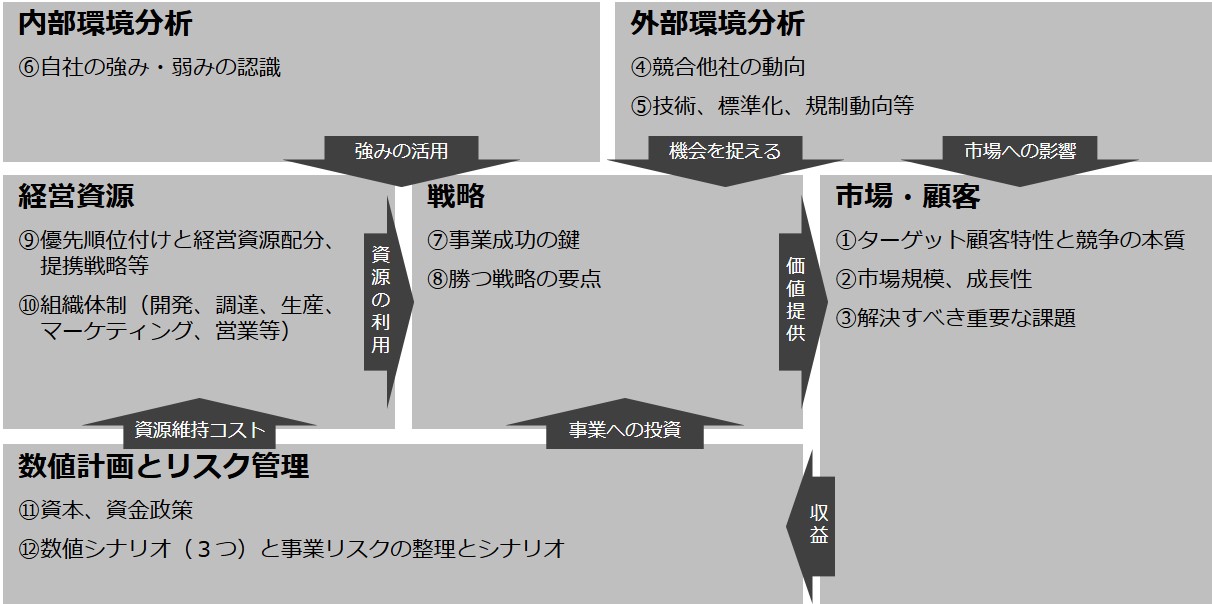 事業戦略シナリオの策定にあたっては、12のパーツを6つのブロックに分けて考えるフレームワーク「BP-S」を使うことで整理がしやすくなる。それぞれのブロックやパーツ間の関係性に留意することで、全体として整合性のとれたシナリオを描くことができる。