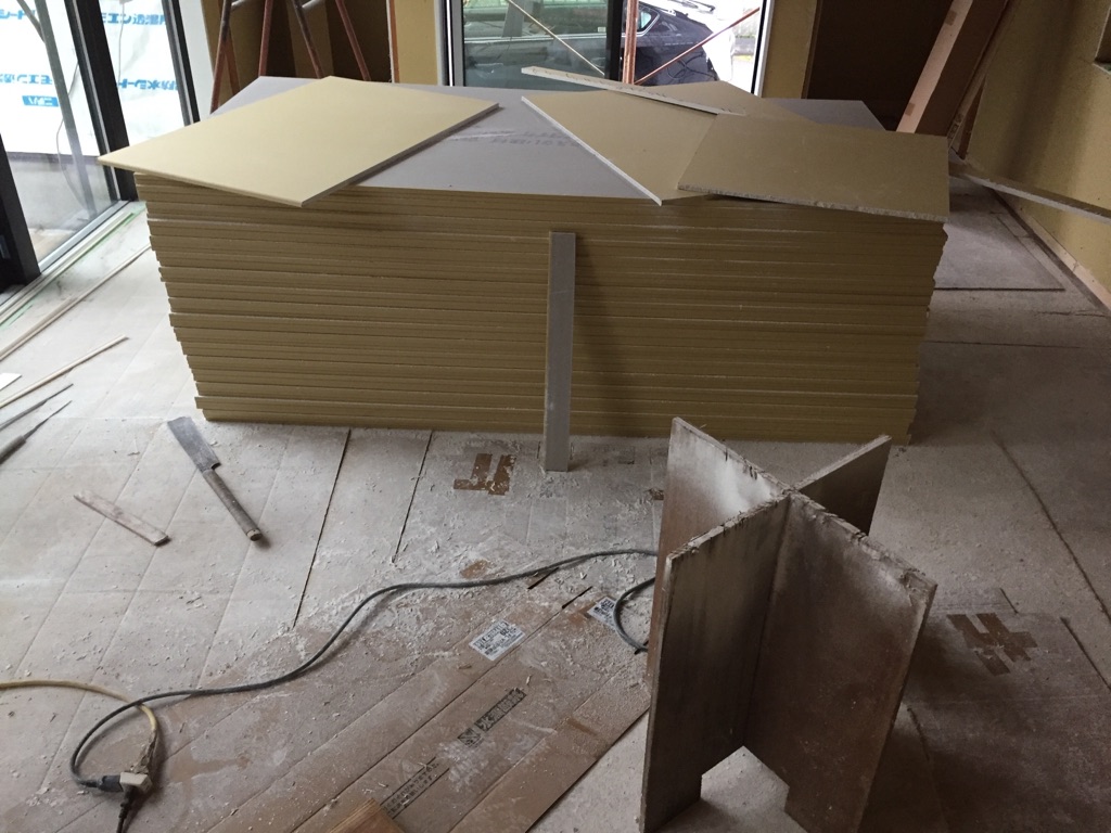 現場に行くと先日入った石膏ボードが置いてありました。