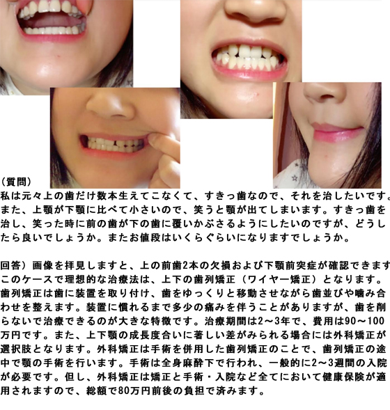画像を拝見しますと、上の前歯2本の欠損および下顎前突症が確認できます。