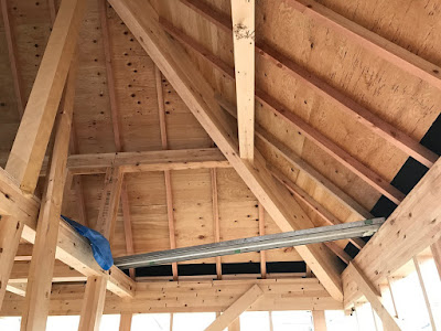 屋根の野地板が貼られ、内部空間も想像できるようになりました。