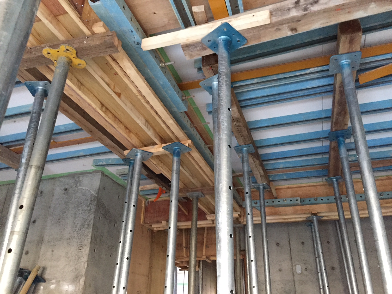 2階床版の支保工は未だ外せませんが、着々と上階に工事が進んでおります。