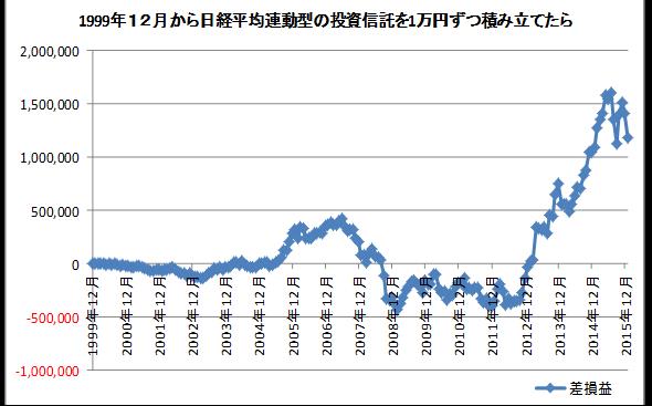 ※写真は、日経平均連動型投信の積立イメージです。どんなに経済が悪い時でも、投資を続けていればいつかは報われることが分かります。