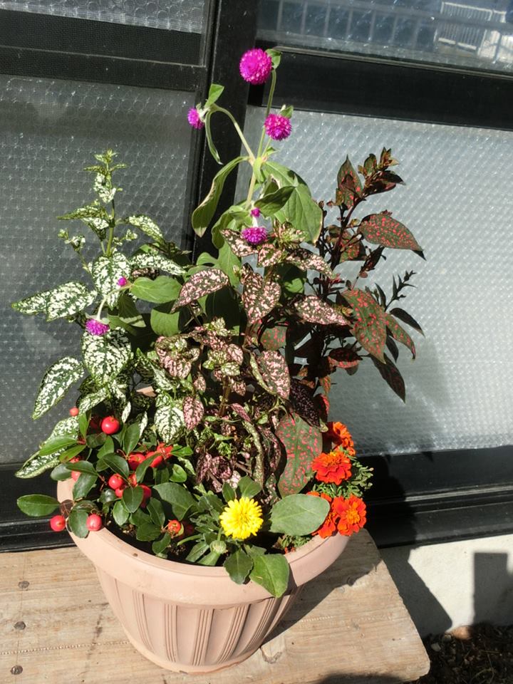 ゆめ花博ではあまり花を見ませんでしたが、普段見る自邸の庭に、寄せ植えを置いてみましたところ、なんとも華やかな気分になりました。一時期、花を植えると水やりが大変とか、日当たりが悪いので1日に何回か鉢を移動させないといけないとか手間がかかるのでやめていたこともありました。
