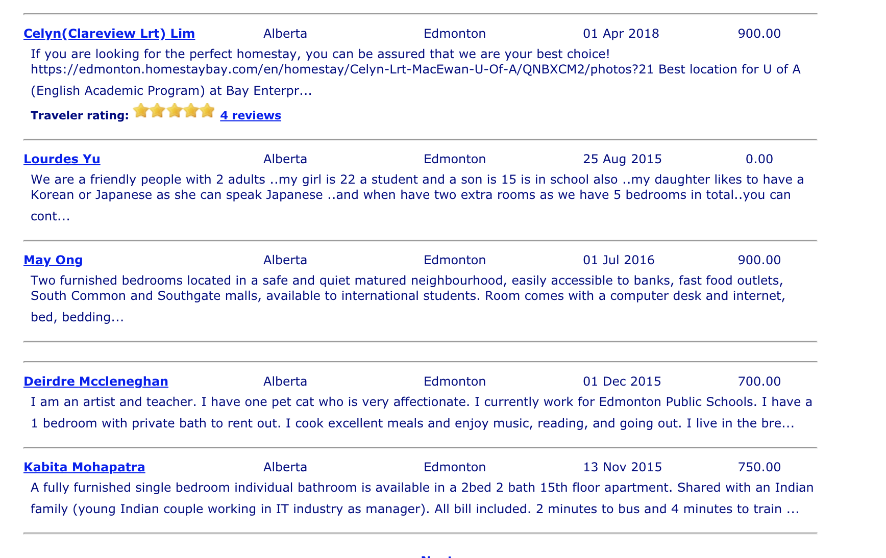 まるで、留学生のオークションのような情報が並んでいます。