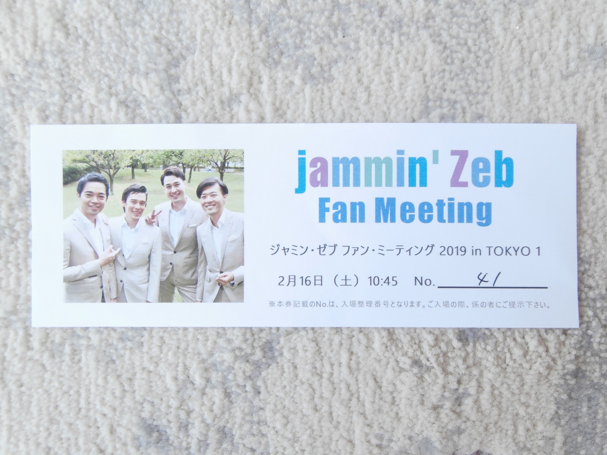 私は今までそういうものに参加した事はなく、最初は入会する気は実は全く無かったのですが、私がファンであるアカペラも得意とするスーパーボーカリスト・グループ「jammin' Zeb(ジャミン・ゼブ)」のライヴでお知り合いになれたファンの方達も増えて来て、彼女達のお話しを伺うと何より楽しそうだ♪という事と、