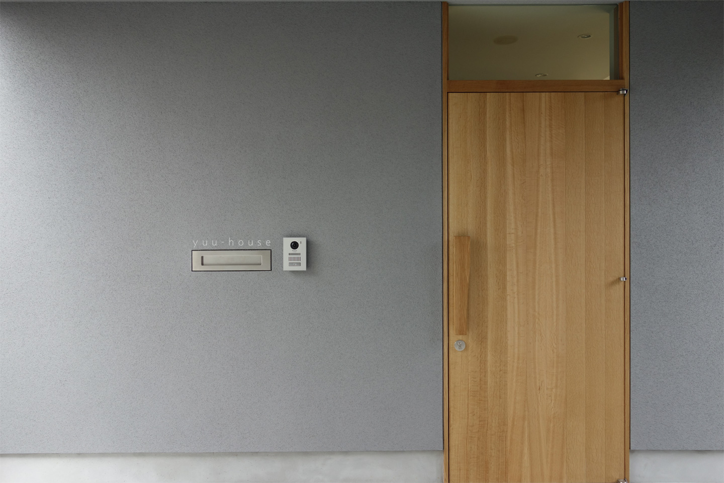 敷地の入口から見た外観はこのようにちょっと控えめ。外壁は薄いグレーです。