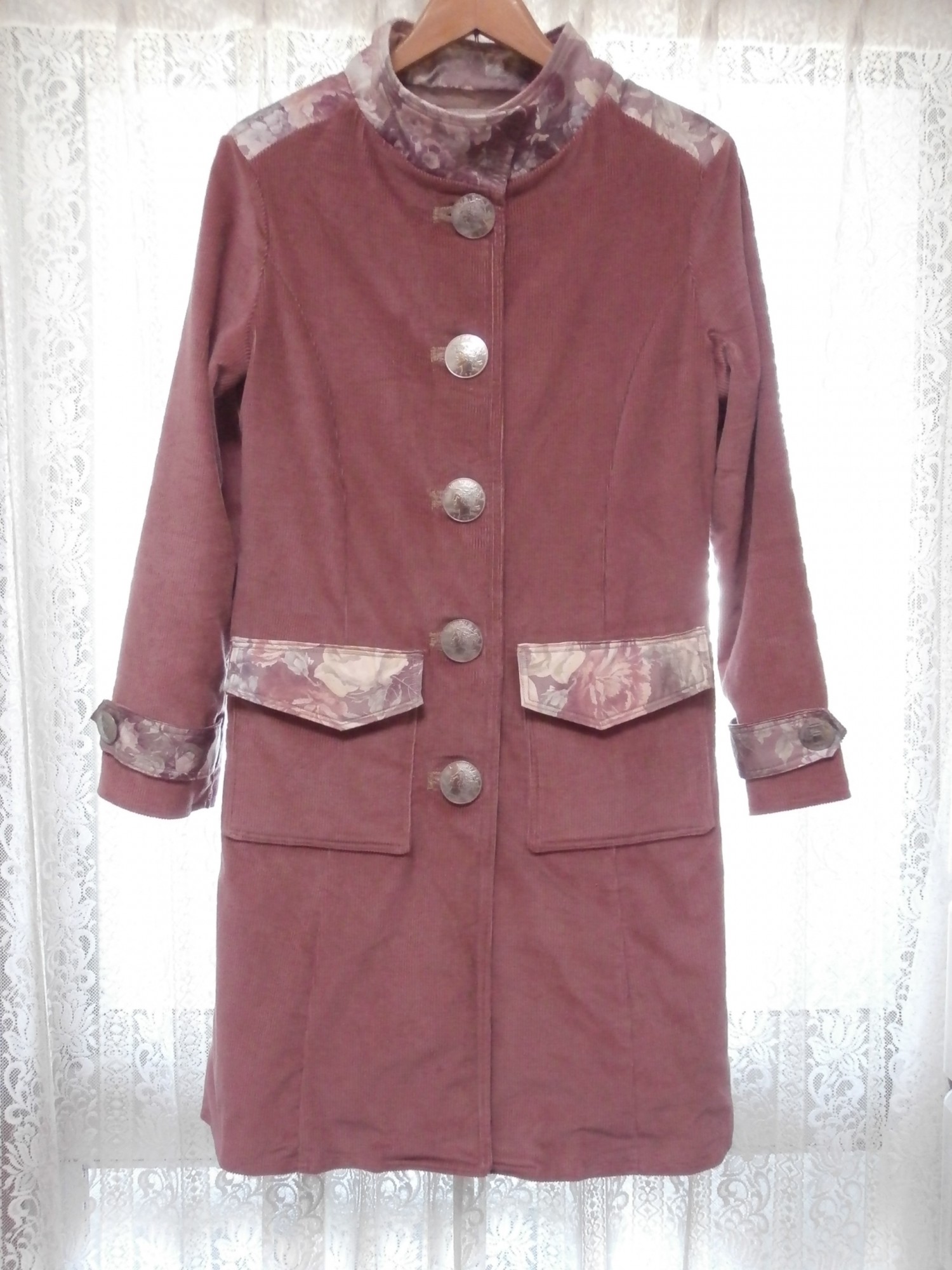 そして、これがとても自分の好きなスタイルだったので、ここからパターンを起こして、以前にバレエ衣裳で使用して余っていた生地を利用し、自分で作ったオリジナルのコートがこちら♫