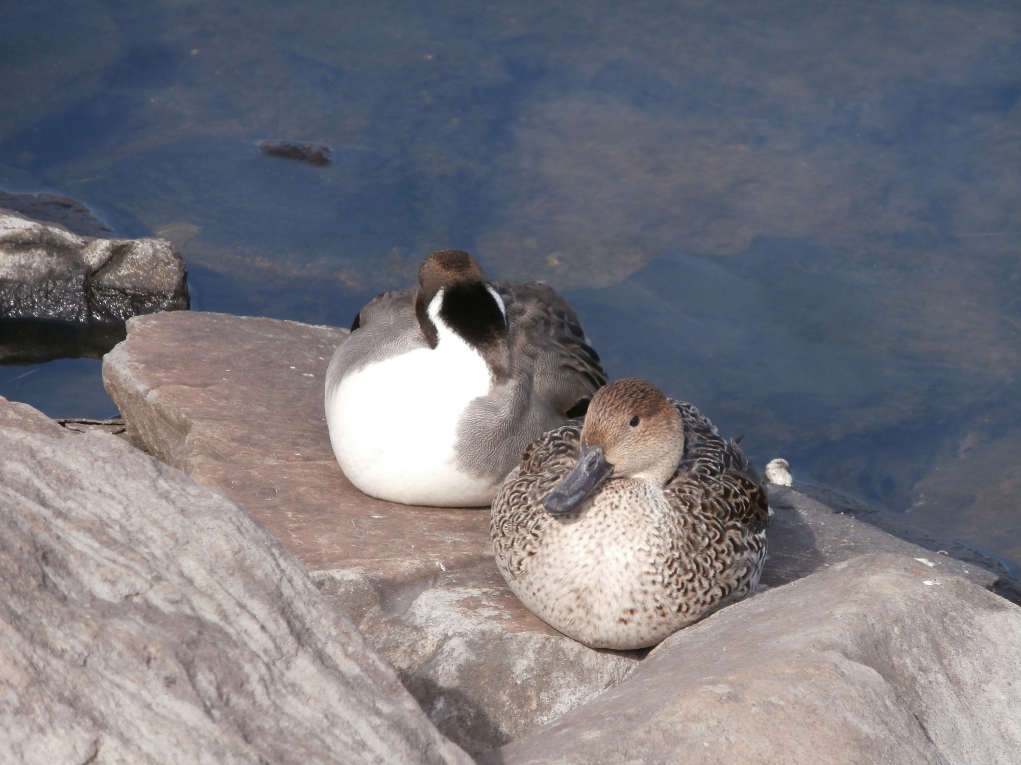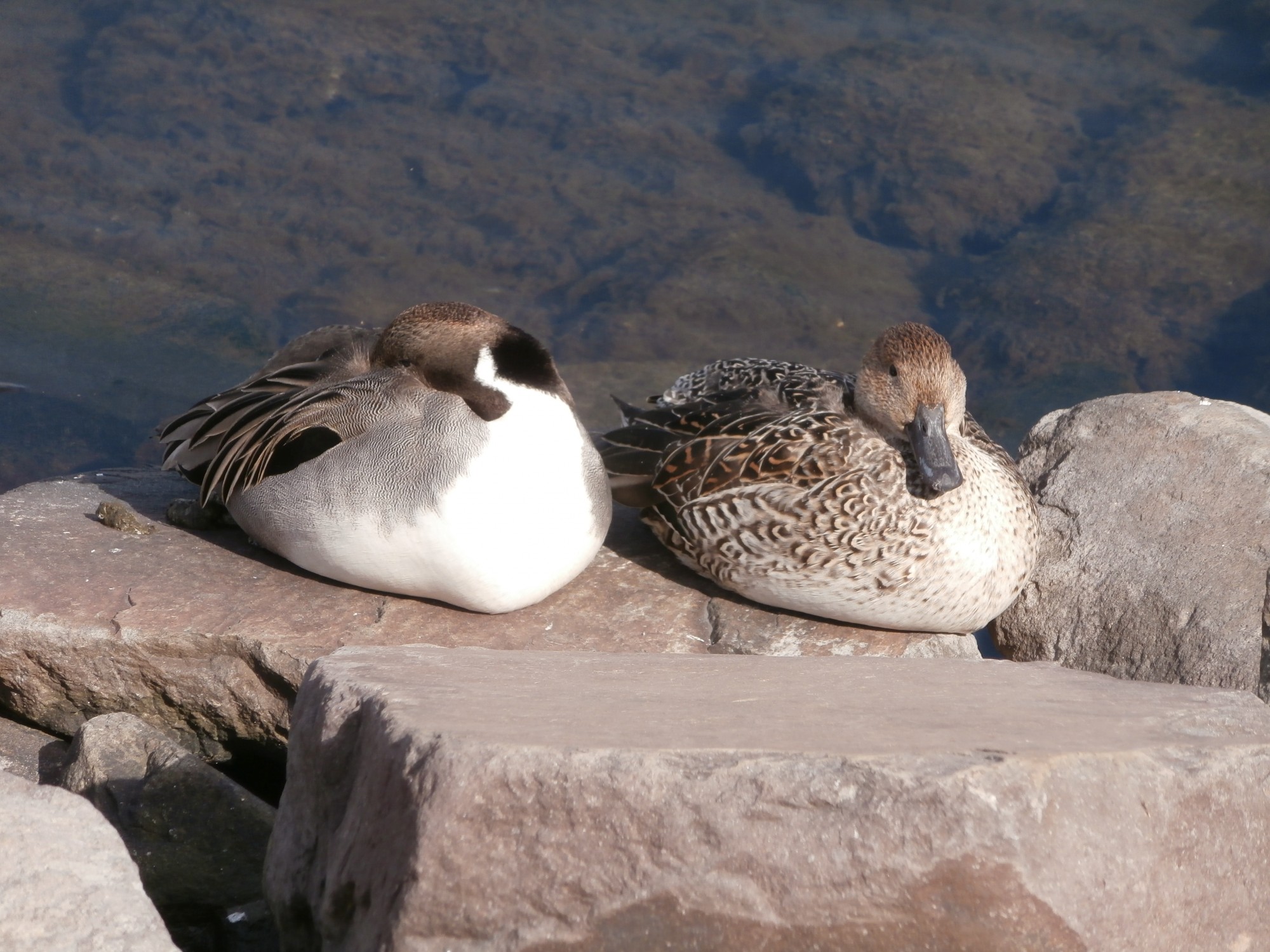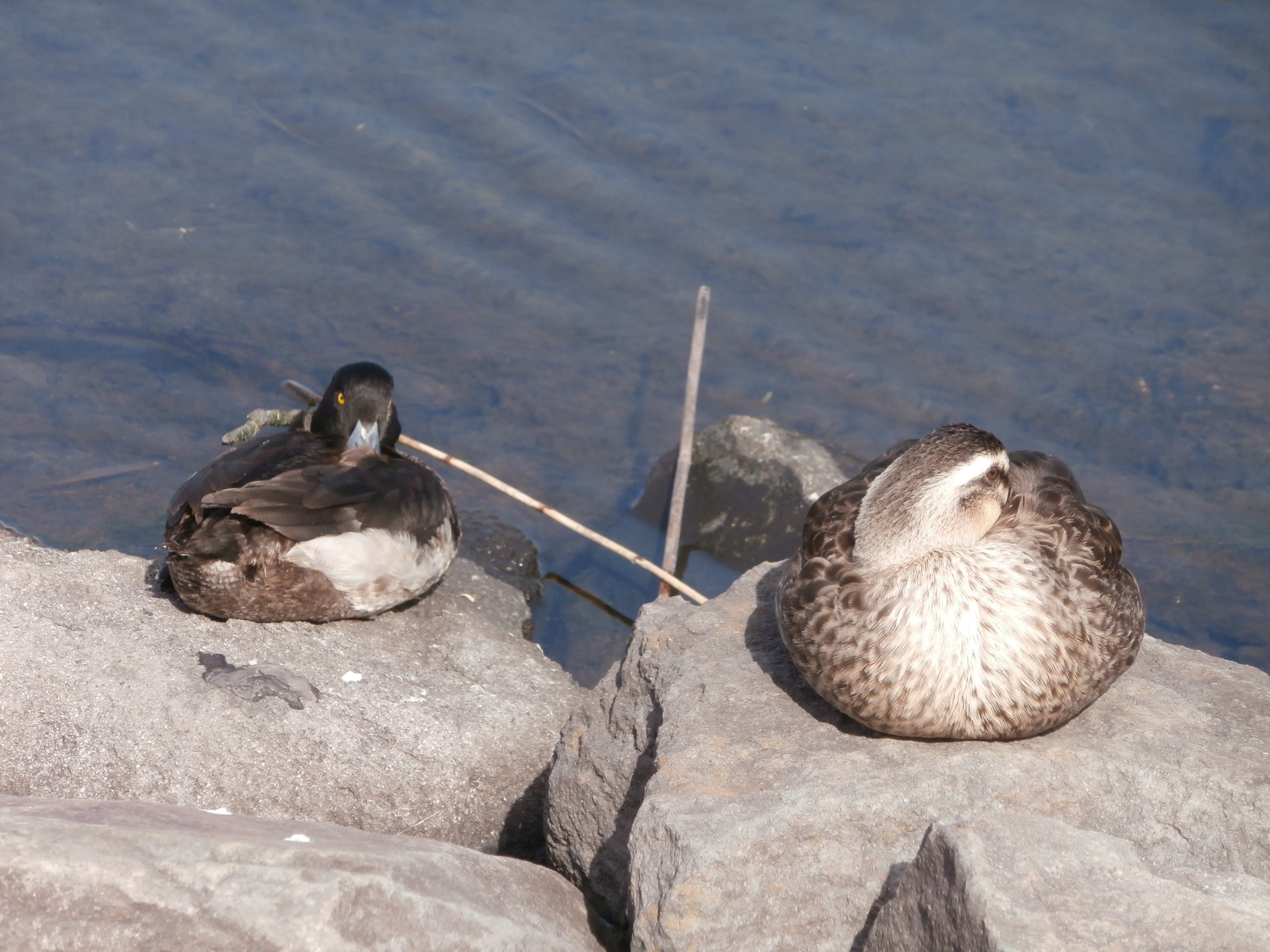 左のこの子はまだ小さいので、ヒナなのかなぁ? どちらの鴨さんも青い嘴が美しかったです~☆彡