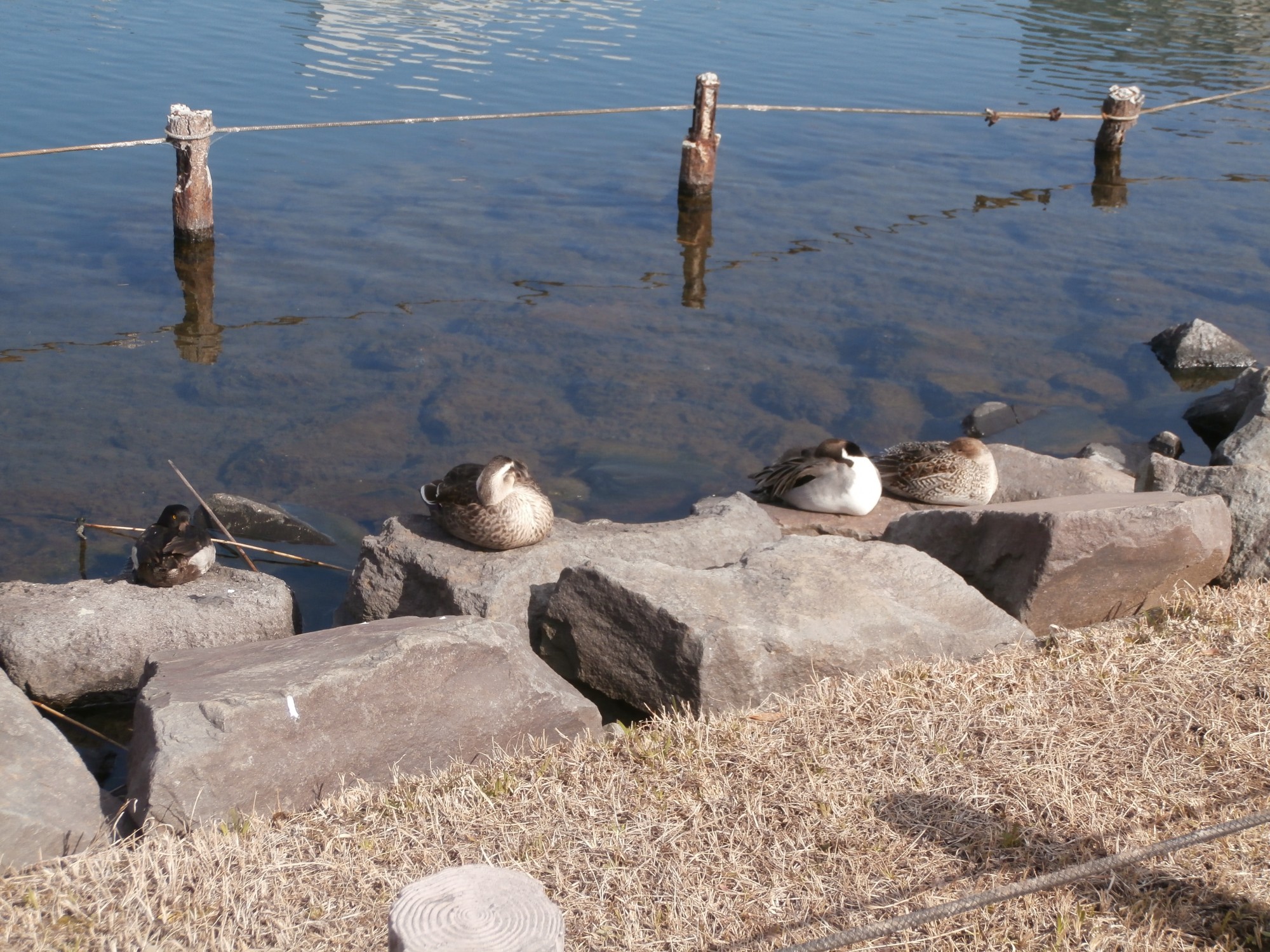 先日又川沿いの道をお散歩していたら、カワユク一緒にお昼寝している4羽の鴨さんに遭遇~♡