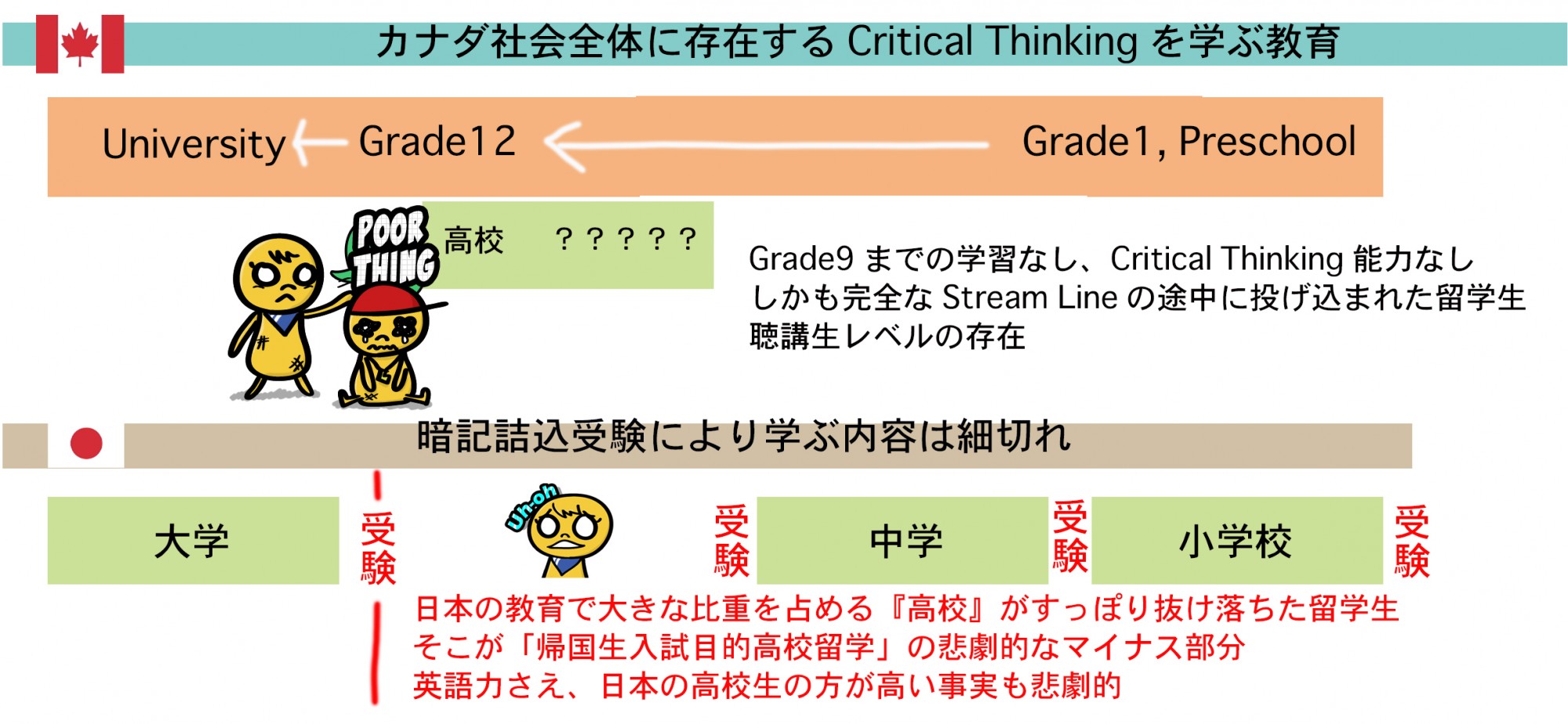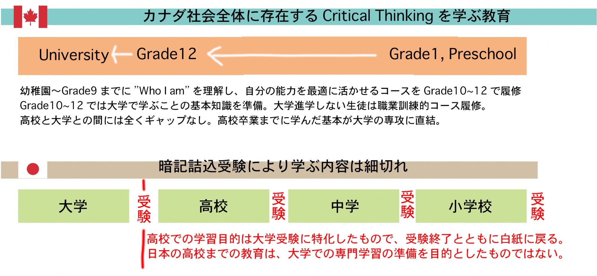 正に「カナダと日本の教育制度は180度異なるということは知らなかったのでは?」と思います。