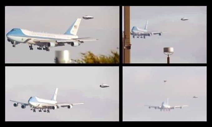 こちらは有名な「トランプ大統領を護衛してるUFO」の写真です。