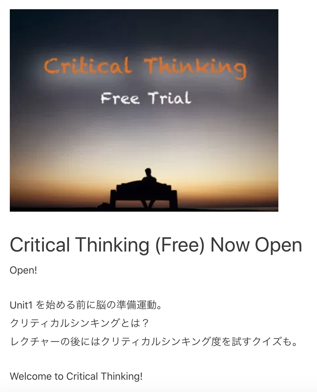 そんな応援のコースでもある Critical Thinking Course。