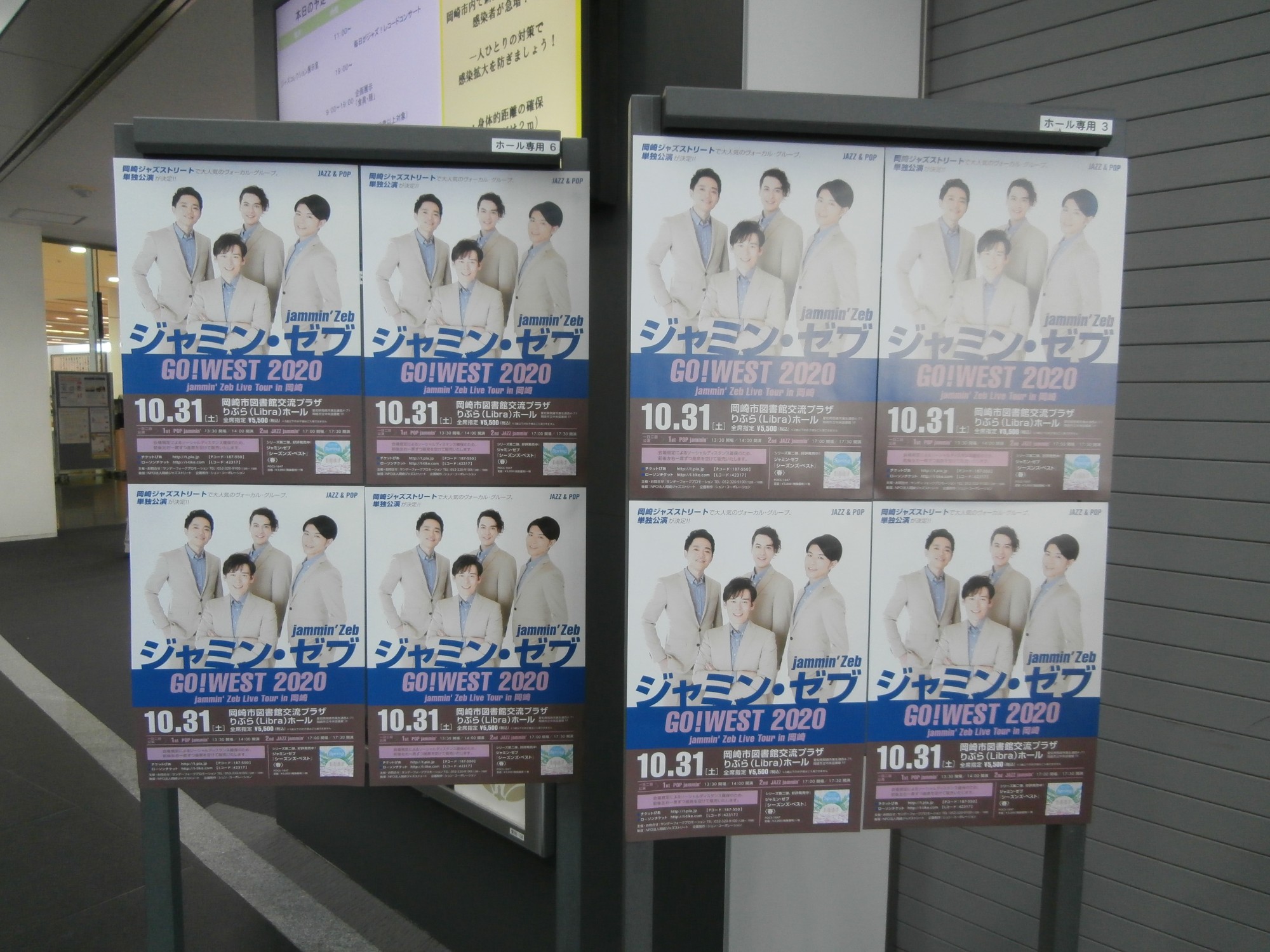 さてさて無事に劇場に着いて中に入った途端、どこからか聴こえて来る美しい生演奏のピアノの調べと共に、私の目に飛び込んで来たのは、jammin’Zeb(ジャミン・ゼブ)のチラシが沢山貼られた看板でした~☆彡