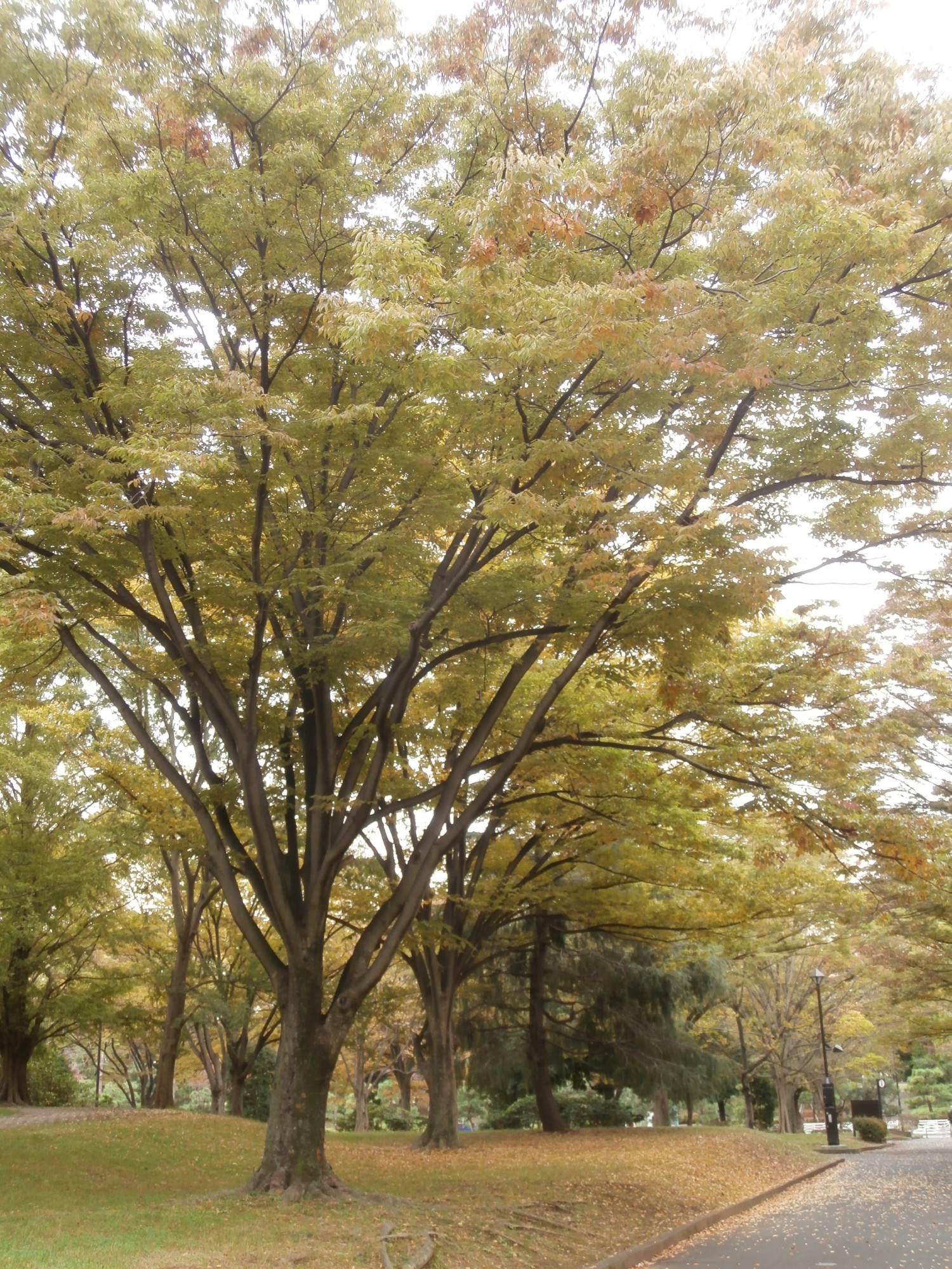 私の大好きな美しいけやきの木々の紅葉と落ち葉の風景も、