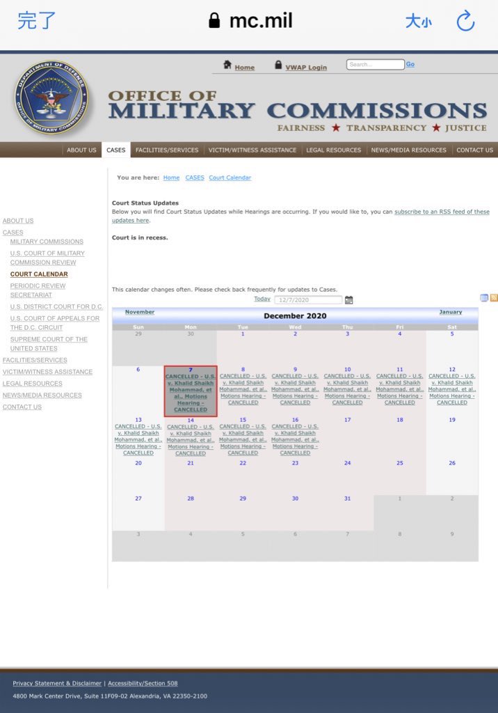 米軍の軍事法廷の12月のすべての予定がキャンセルされたと噂されている。