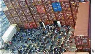 (※これは過去に行われた難民救済時の写真らしいのですが、今回のEVERGREENの座礁事故での映像として多くの方が流布しています)
