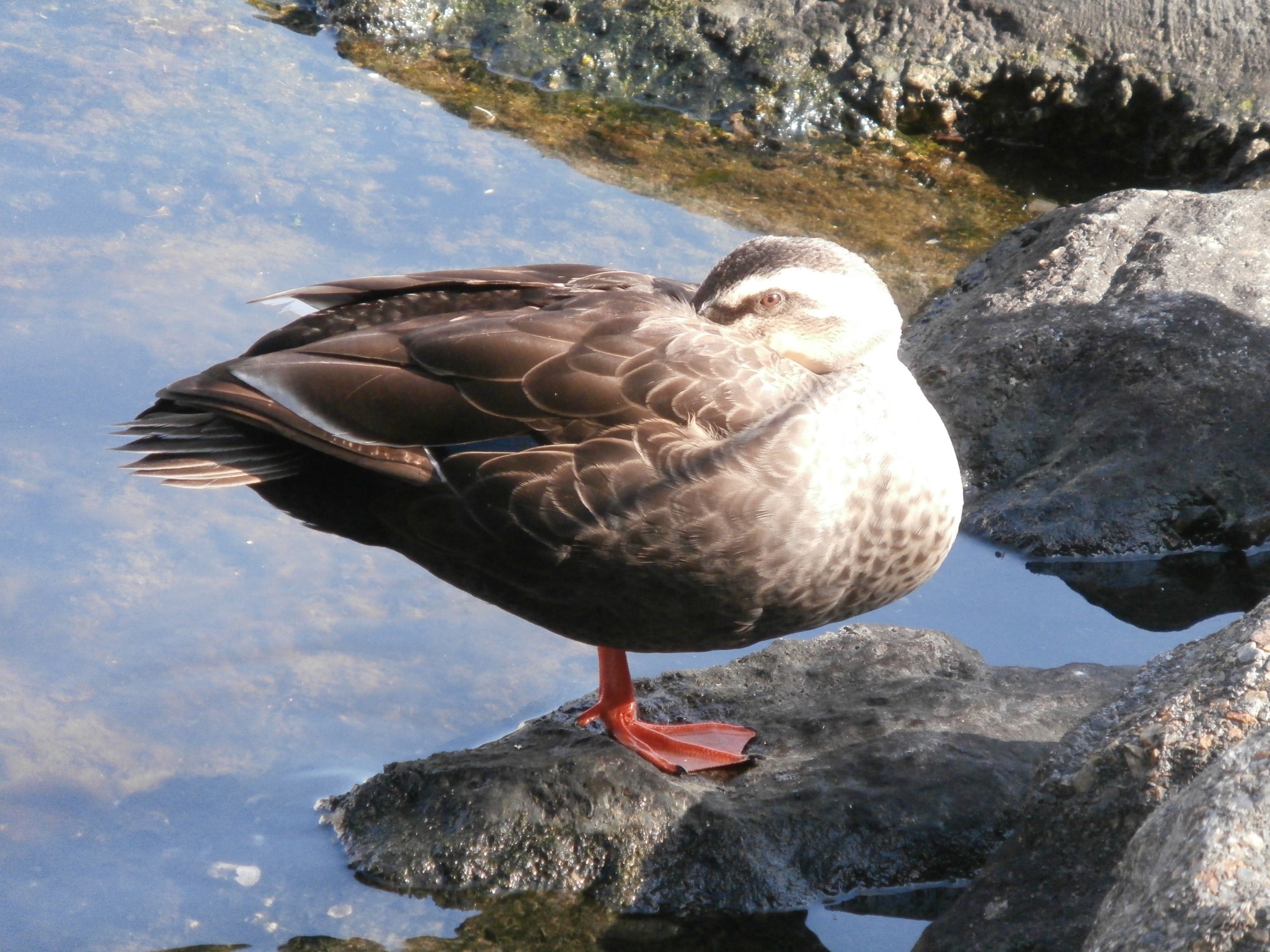 眠りの体制に入りながらも、撮影しようと近付く私に一瞬警戒心を持った鴨さんのこの眼光~☆彡