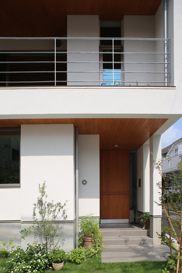 シンプルな切妻屋根のシルエットの中に、リビングに連なるバルコニーを組み込み、