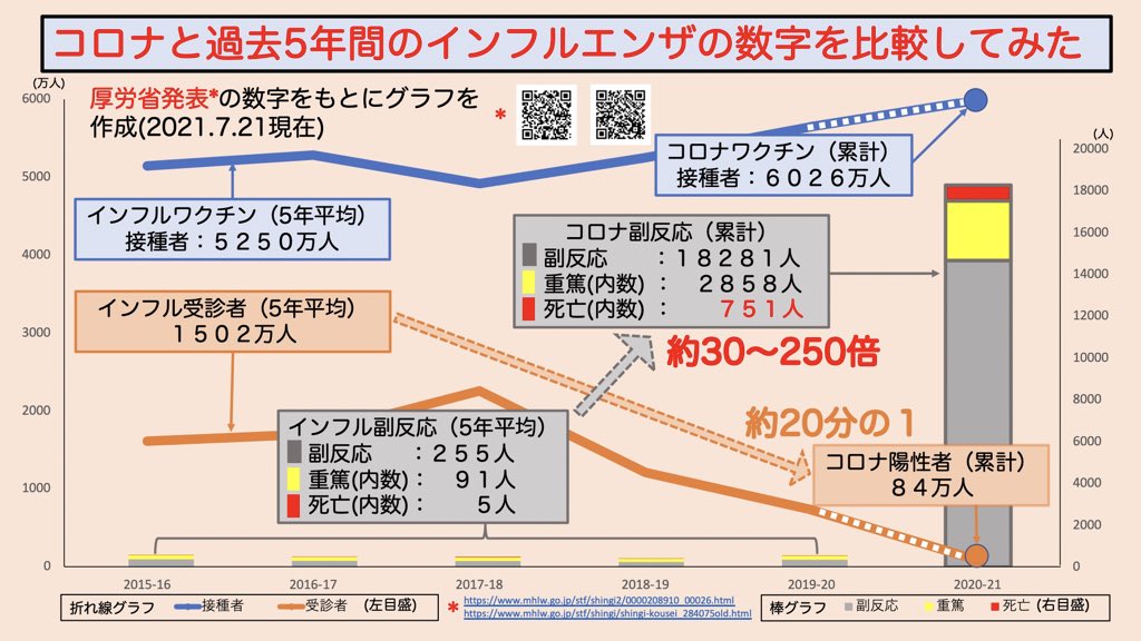 又、この様にちゃんとしたデータに基づく資料が出ているにも関わらず、(※ちなみにこのデータは、厚労省の発表のデータを元にしたものなので、今回のワクチン接種に因る死亡者が751人とされておりますが、実際にはもっと凄い数の死亡者がおられると推測されています)