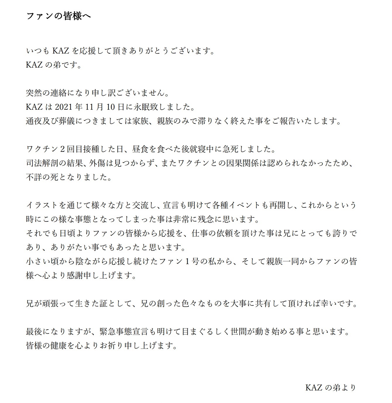 ワクチンを接種したその当日に絵師が無惨に亡くなったそうだ。