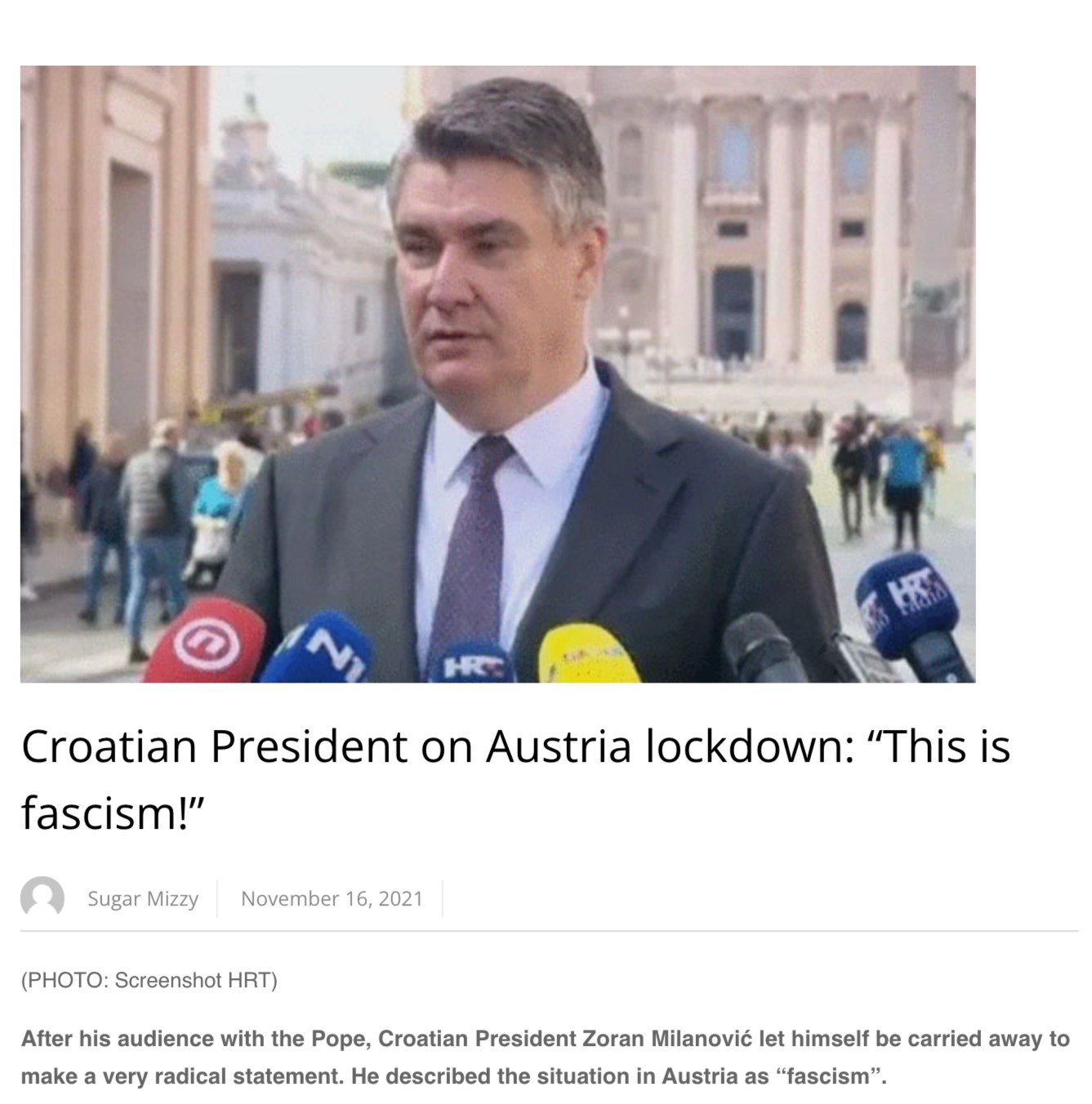 クロアチア大統領、オーストリアが未接種者を対象に自宅軟禁ロックダウン処置を行っていることを「ファシズムだ」と批判。そして、その記事すら、Google検索ではヒットしない。思っている以上に我々は情報操作されているようだ 。