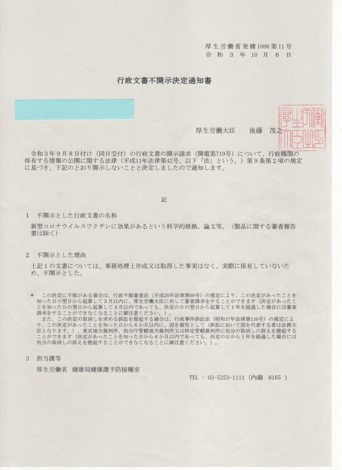 しかもこの「ワクチン」に関してはメーカーは責任をとらないで国が責任をとるという事になっているのです。責任を取る側の厚労省が説明できなければどうやって責任をとるつもりか?