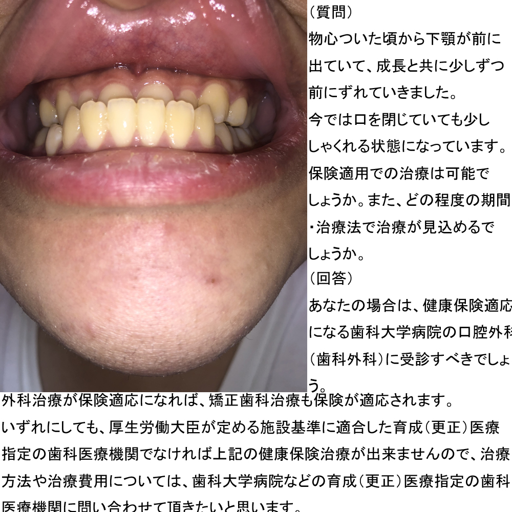 19歳男性です。物心ついた頃から下顎が前に出ていて、成長と共に少しずつ前にずれていきました。