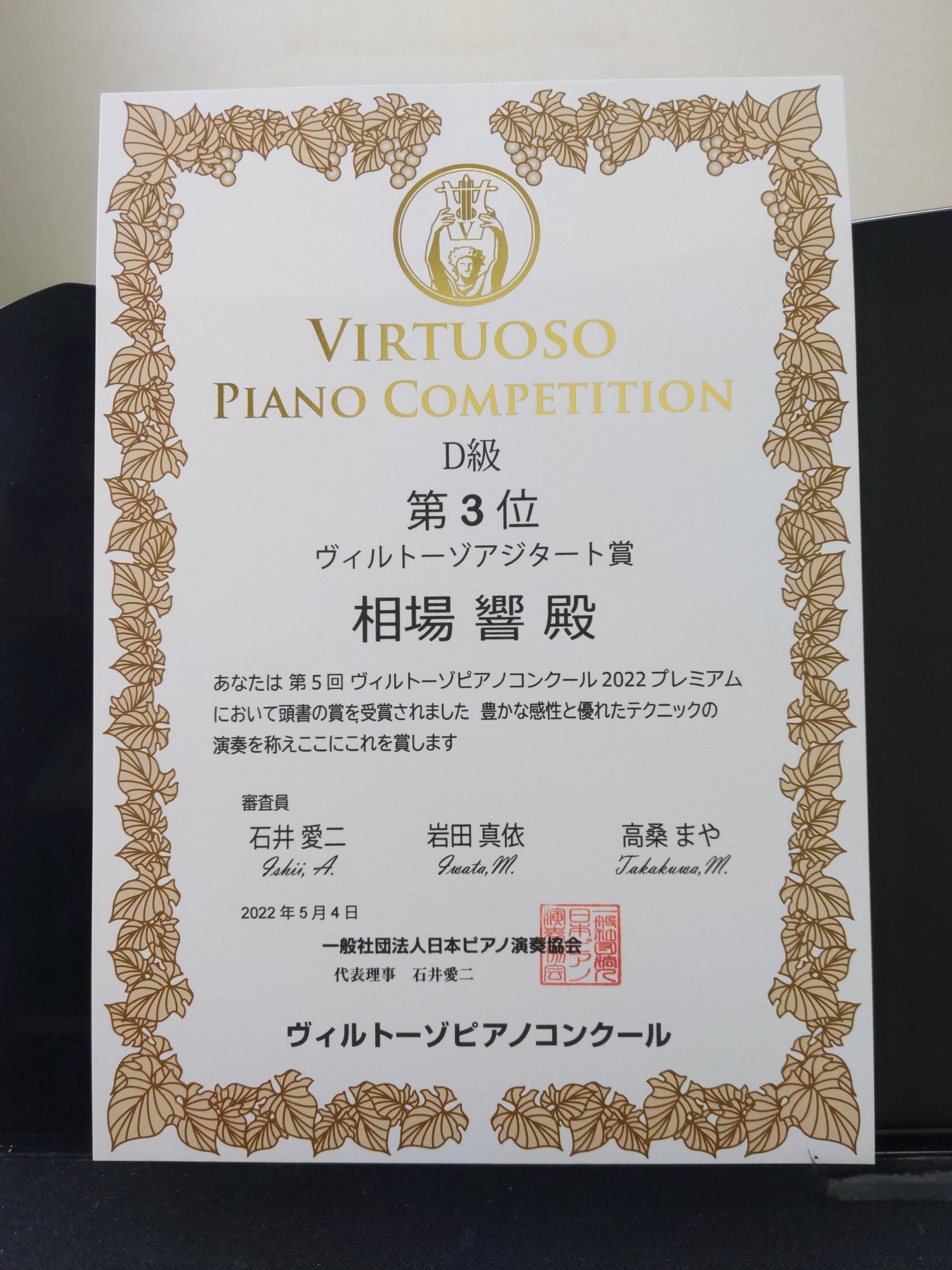第12回豊田音楽コンクール 金賞受賞❣ 押野 智之 - 音楽講師(2022/10/06 07:11)