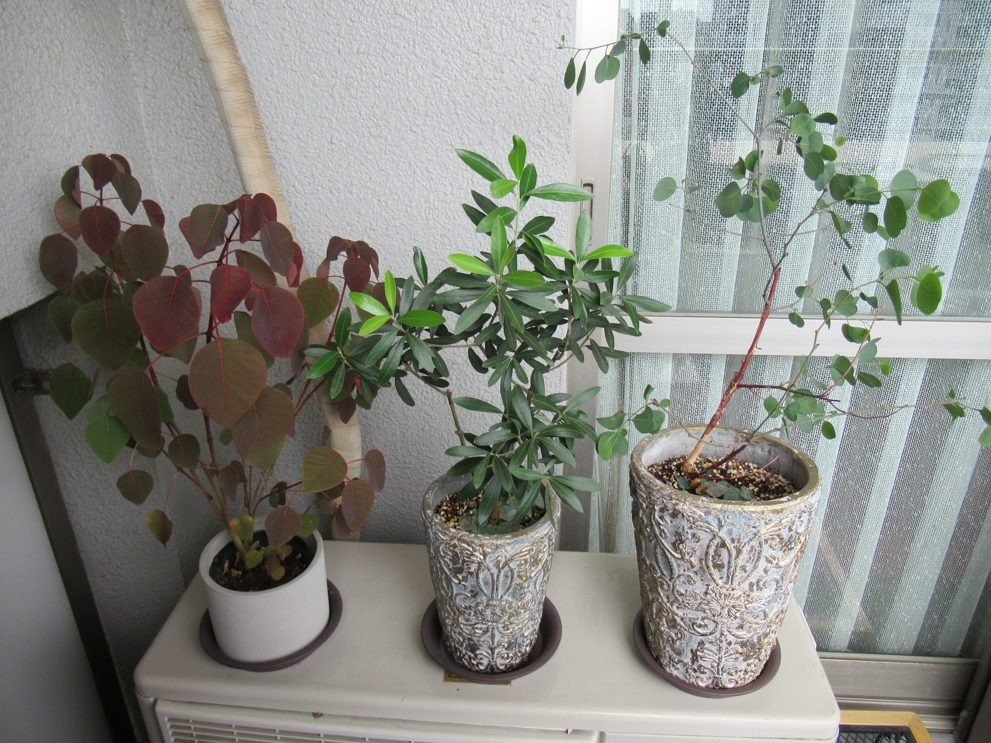 尚、こちらは最初は室内に飾っていた、左からチョコリーフ・オリーブ・ポポラスの木(※本物)ですが、