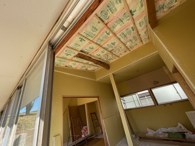 梁を見せる感じで・・・と思っていたのですが、天井断熱材を入れたら