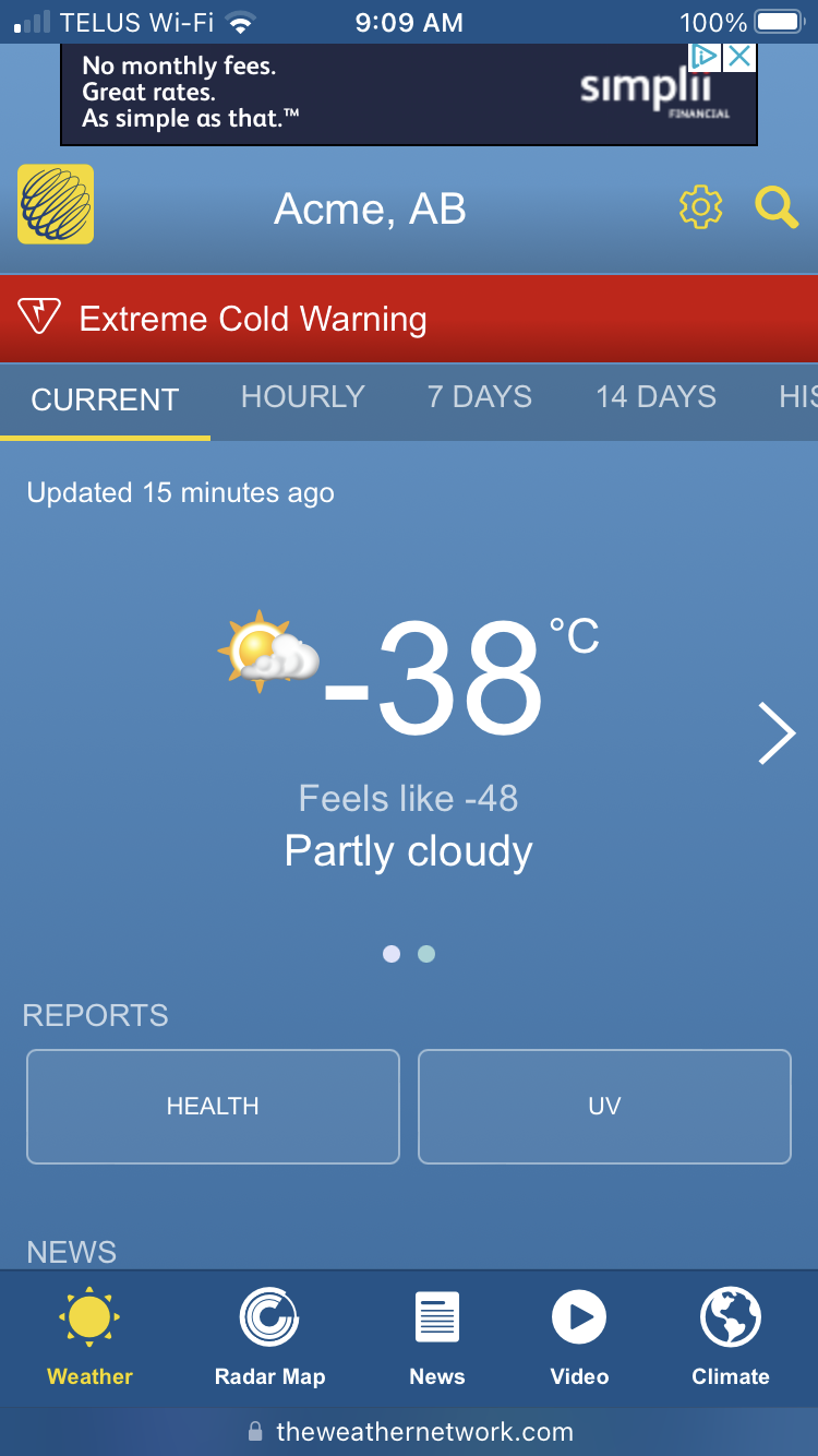 今日はなんと、カナダ西部は世界で一番寒いらしい。