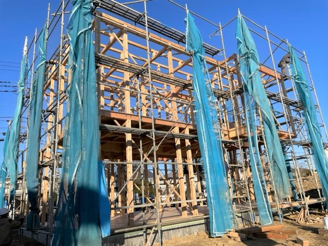 晴天の大安に上棟しました。