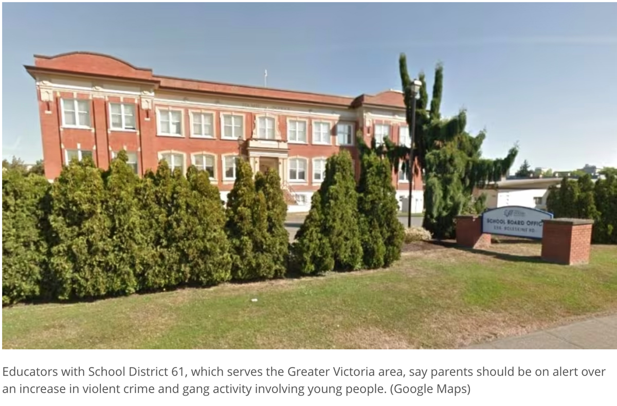 「ギャングがGreater Victoria(ビクトリア周辺地域)の高校生をターゲットにしていることを、地区教育委員会が高校生家族に警告。」