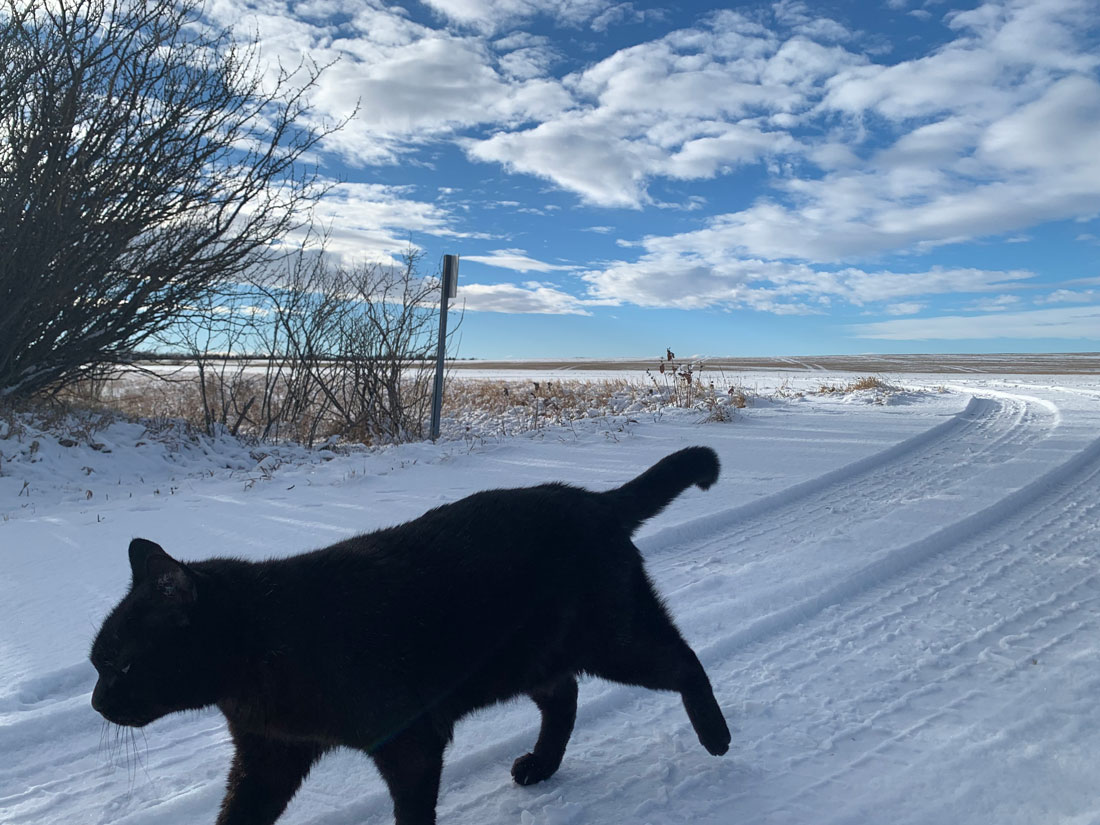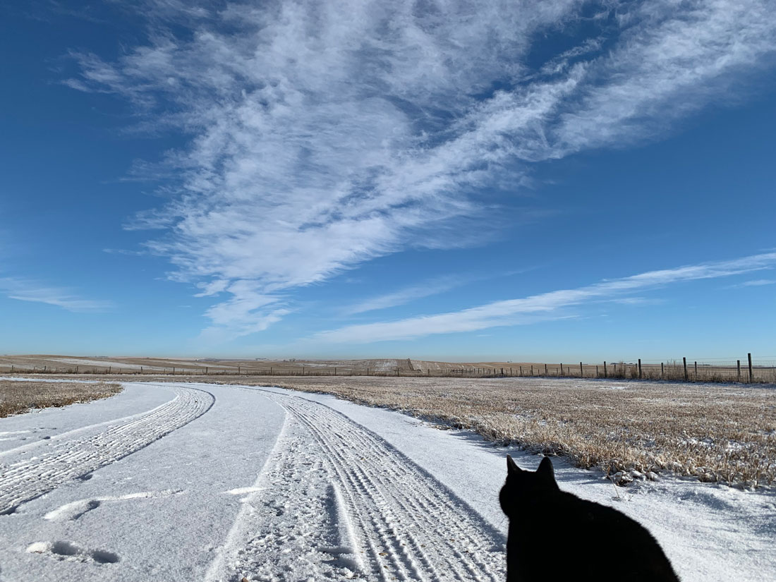 そんな中、日本生まれのカリもアルバータのシェルターから保護したティカも、雪のながらもサンサンと降り注ぐ太陽と大きな抜けるような空の下を散歩。
