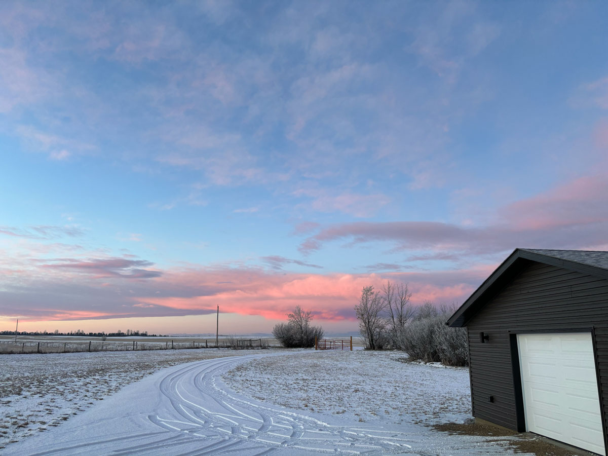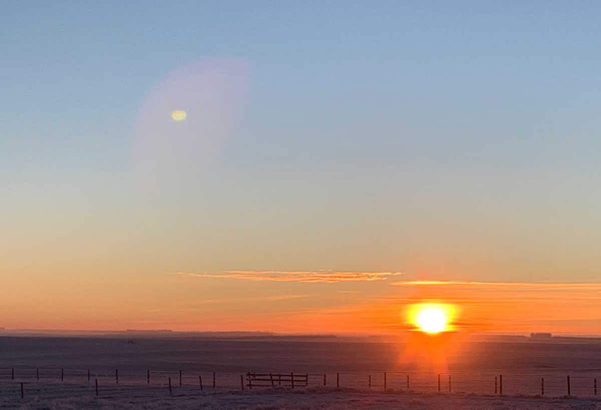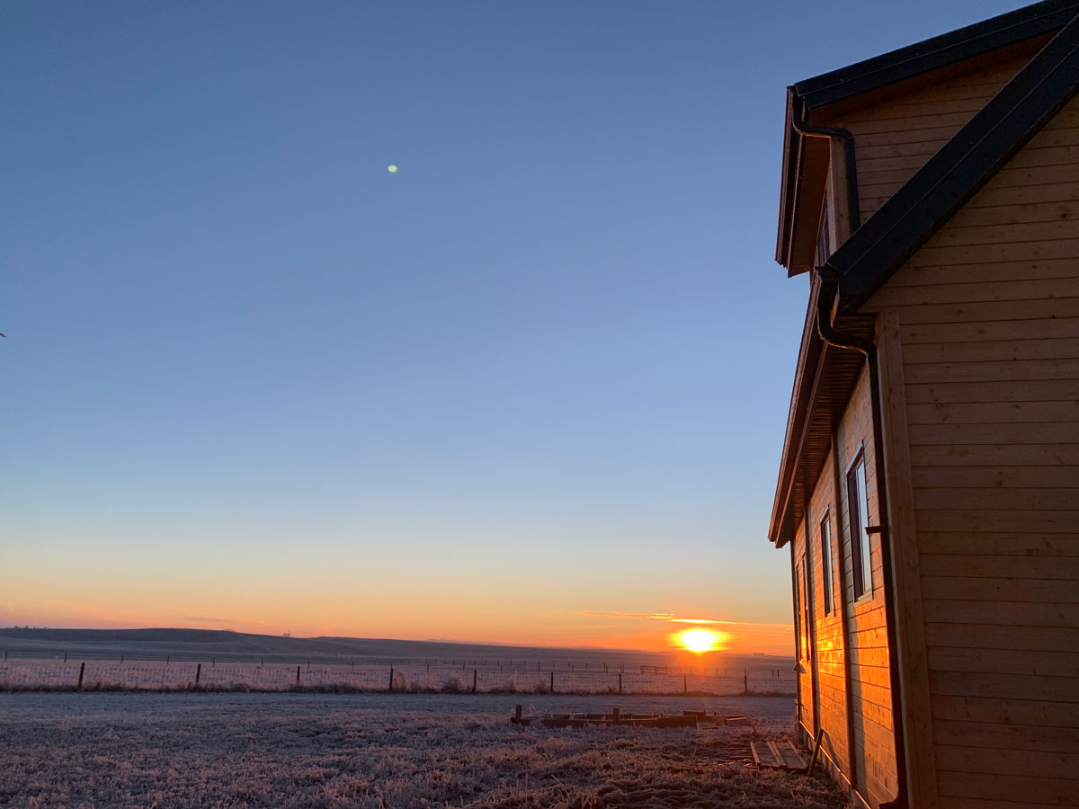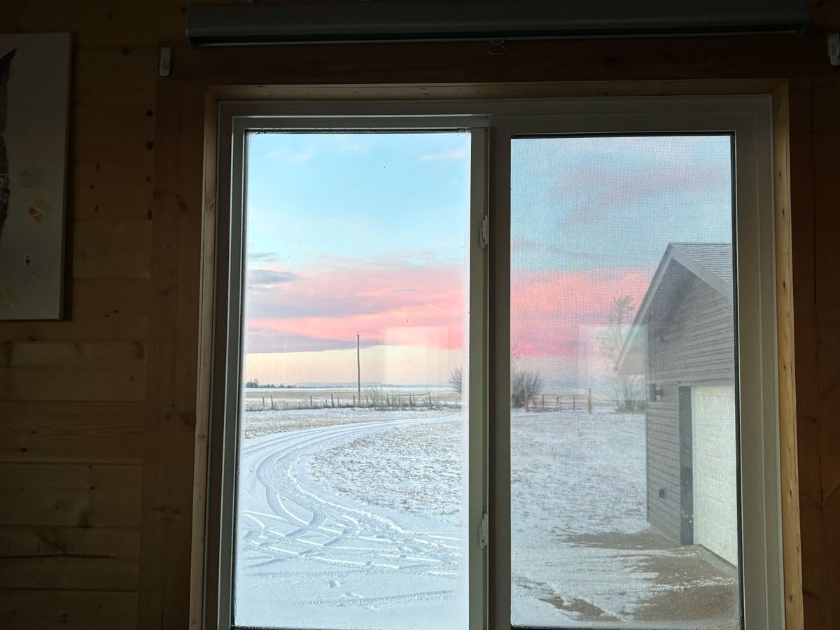 童話に出てきそうなこんな夕焼けをキャビンの窓から眺め