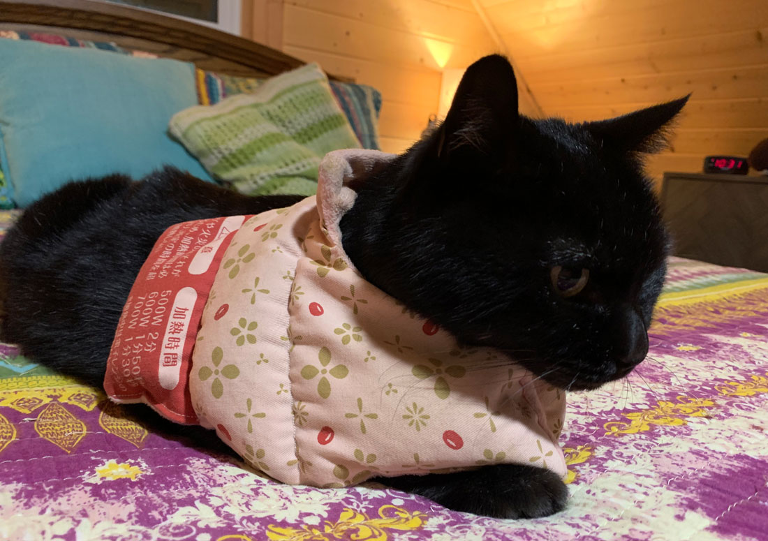 毎晩、日本から送ってもらったあずきのヒートパックでマッサージ