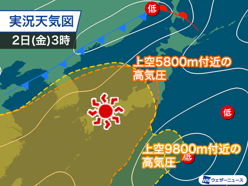 西日本は上空の高い所まで高気圧に覆われ、気温が上がりやすい状況です。