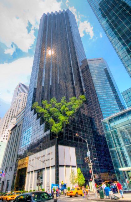 Why does Trump Tower have an inverted Pyramid with 6 trees on each side? (6x6x6)