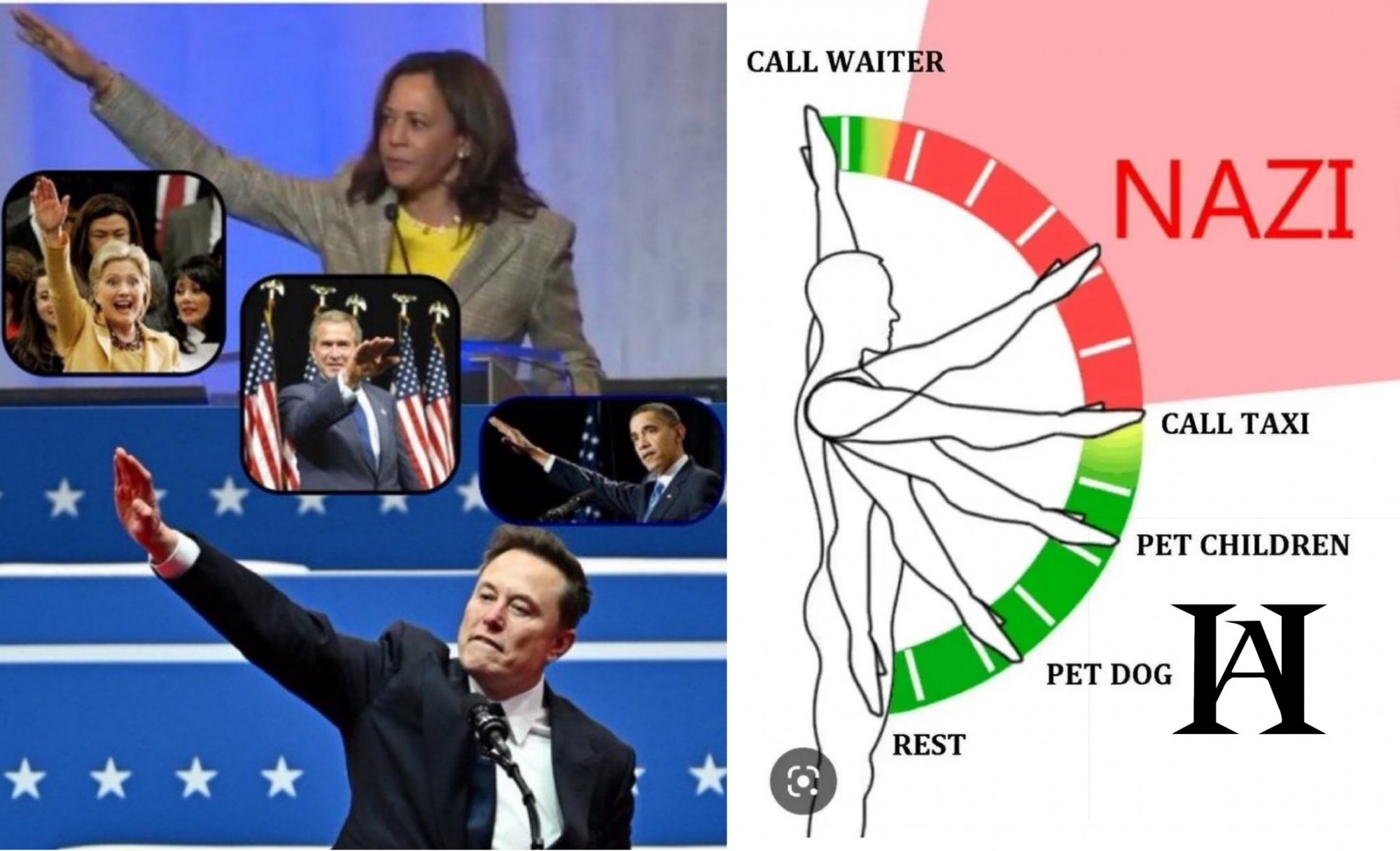 イーロンマスク氏の国民の団結を訴えている時に『右手を挙げる』写真を『ヒトラーのナチス式挨拶」に酷似しているとパヨク界隈が騒いでいますが、明らかに『切り取り』