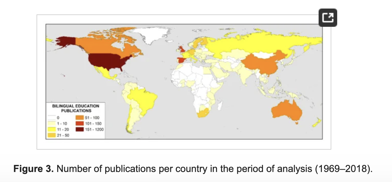 (1969〜2018年に世界で行われたバイリンガル教育についての研究の数です。)