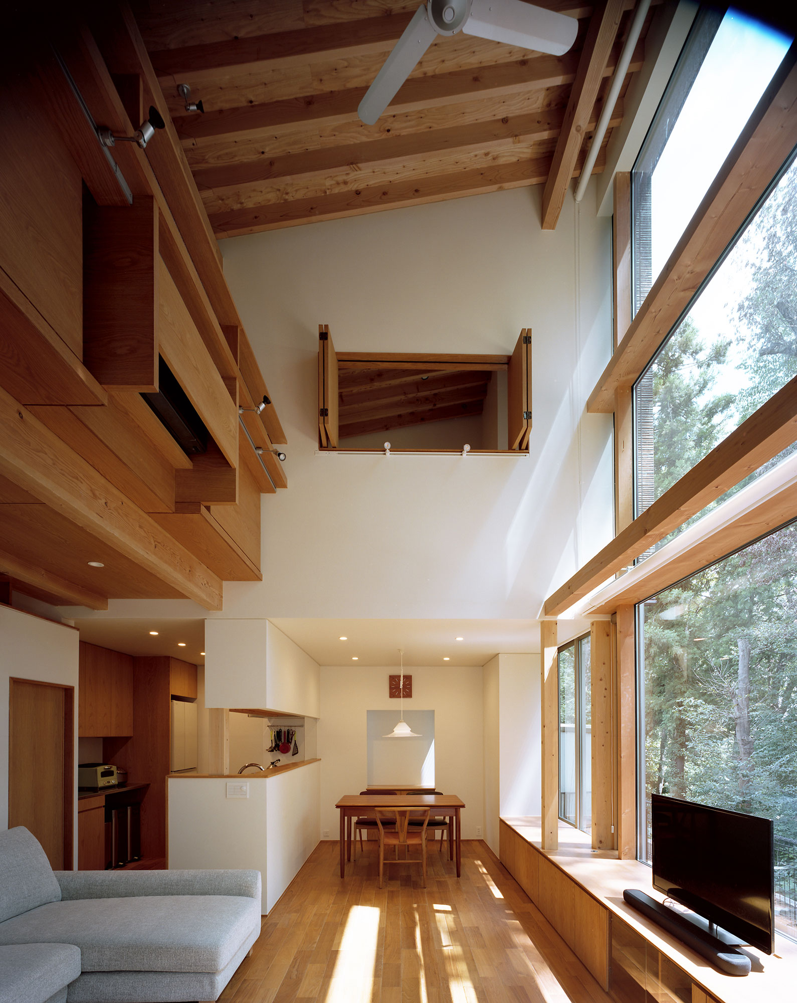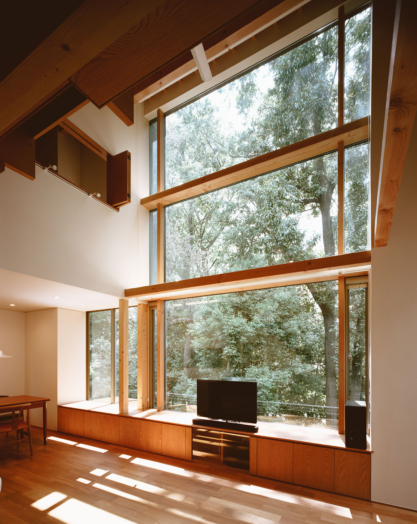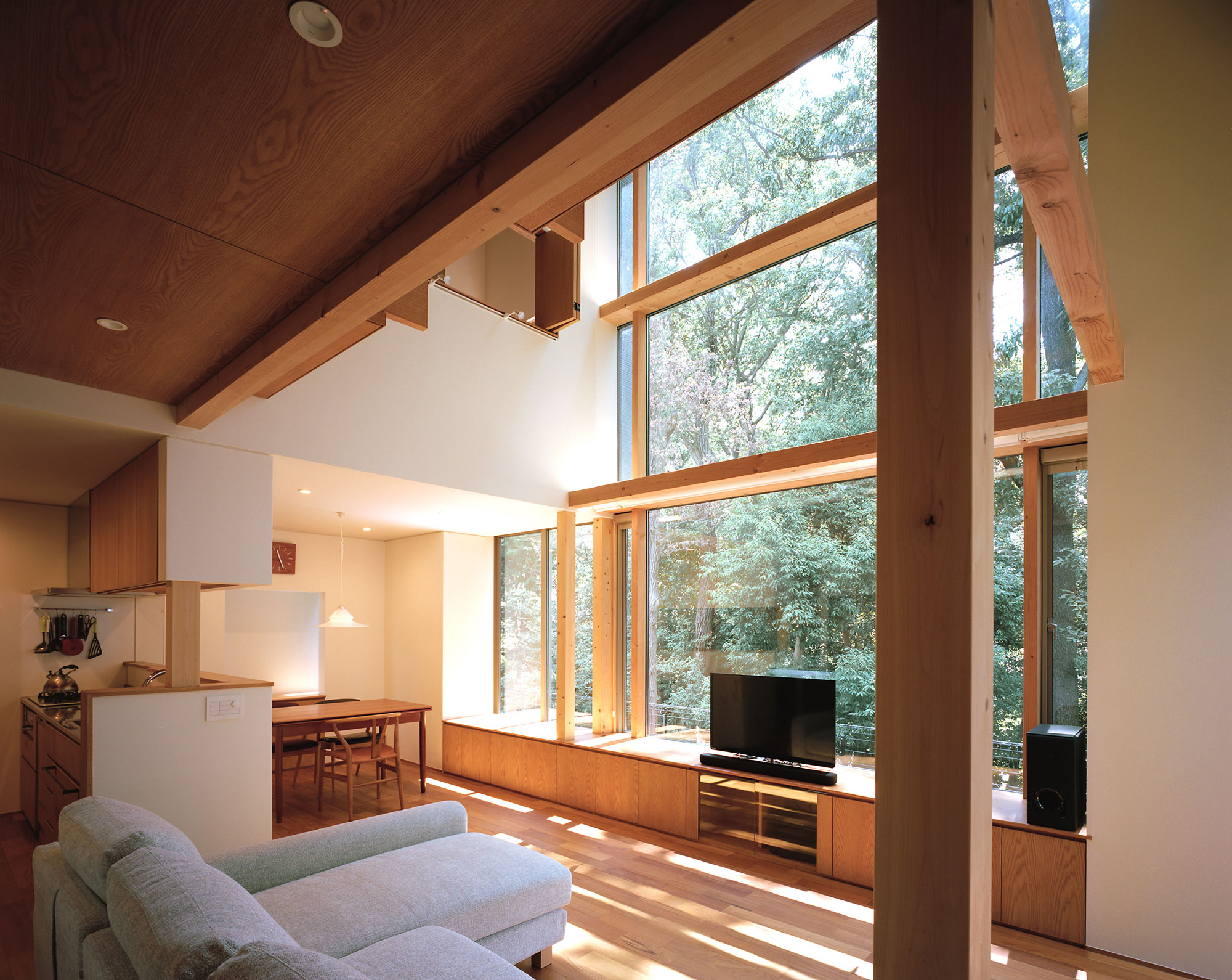 豊かな森をリビング一面に取り込むことで自然へと心が解き放たれる建築空間を形づくりました。